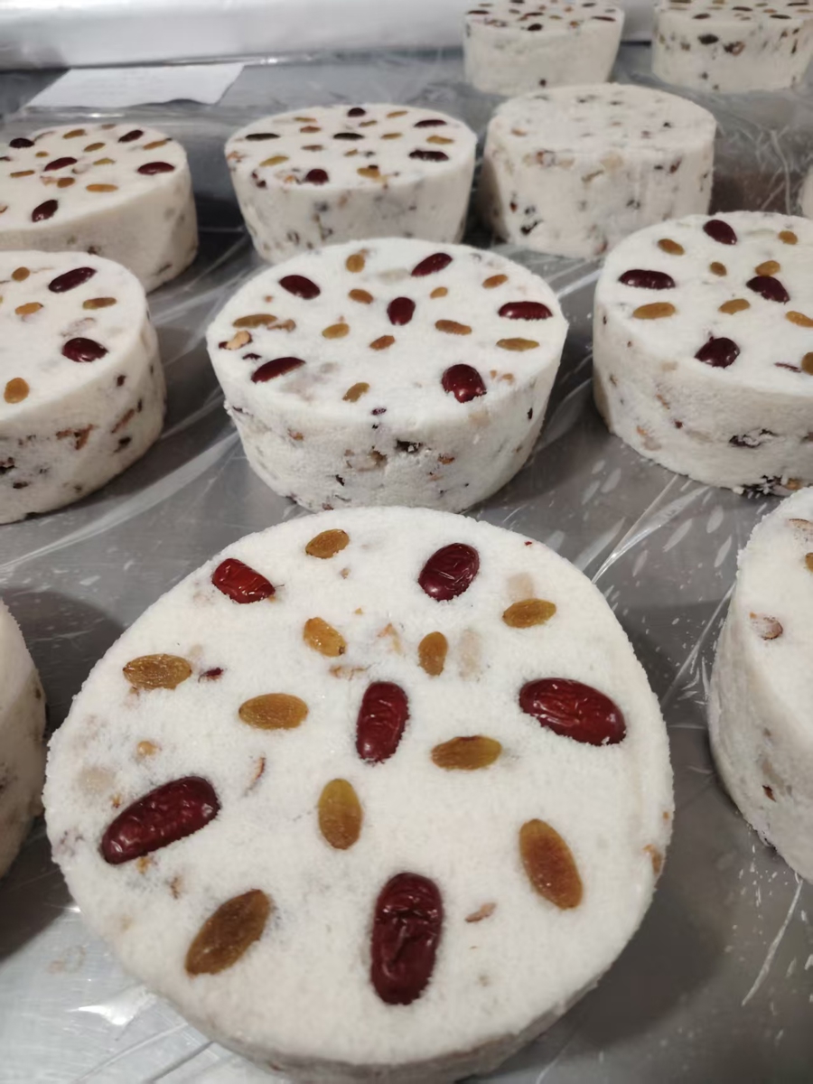 作为宝山区级非遗,罗泾四喜风糕取“福禄寿喜”四喜之意,以土产货优质粳米、糯米配比,经浸泡、磨粉、筛料、入模、蒸制而成,口感松软绵密、甜香不腻,是沪北乡间过年走亲戚、贺喜的热点年货。