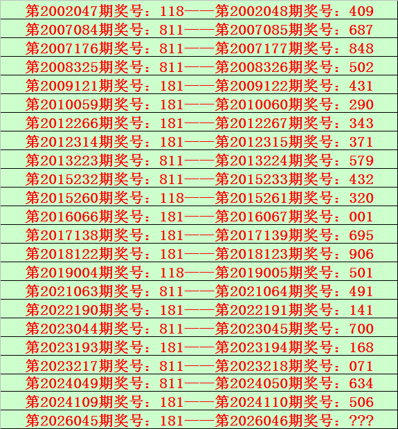 福彩3D第2026046期开奖日历:2026年2月25日,历史上第046期已开出了24次奖号,积年同时号码辞别为:646、463、157、488、021、208、179、989、796、816、493、966、248、636、383、570、347、145、822、791、875、103、730、490。