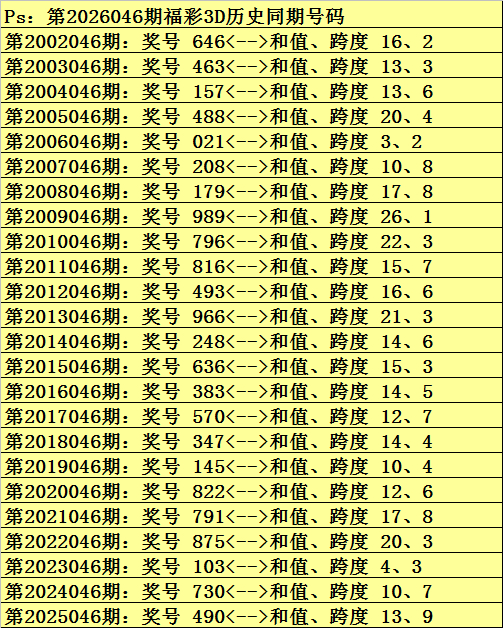 金原第2026046期福彩3D保举: