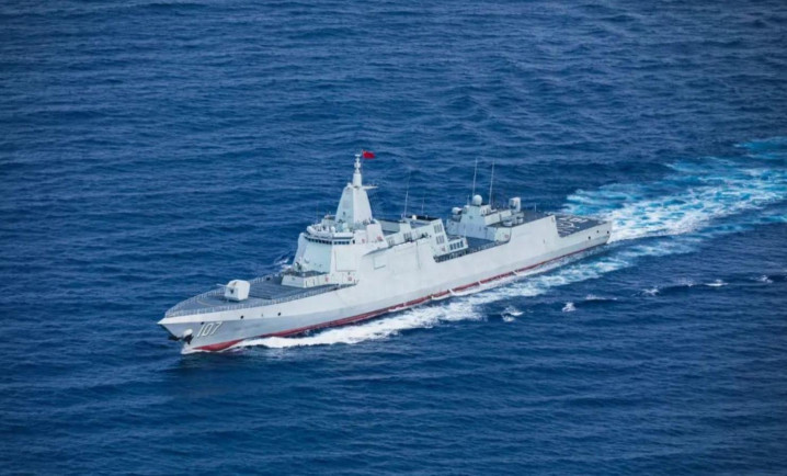4月下旬,南部战区107编队在菲律宾吕宋岛以东海域组织演训,055型万吨大驱遵义舰带队,科目包括实弹射击、海空协同、快速天真。