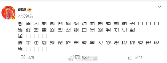 [#谢娜怒发68个赞赏号#]#谢娜恳请不要再惊扰未成年孩子#2月25日,@谢娜微博连发68个赞赏号敕令保护未成年孩子的逃匿和成长环境,AsiaGaming“恳!请!不!要!再!将!镜!头!对!准!未!成!年!孩!子!!!!!!!她!们!需!要!的!是!安!静!正!常!的!学!习!与!生!活!!!!!!!请!守!住!边!界!保!护!未!成!年!东谈主!的!隐!私!和!成!长!环!境!!!!!!!”尊重公民逃匿权,助力未成年健康成长。