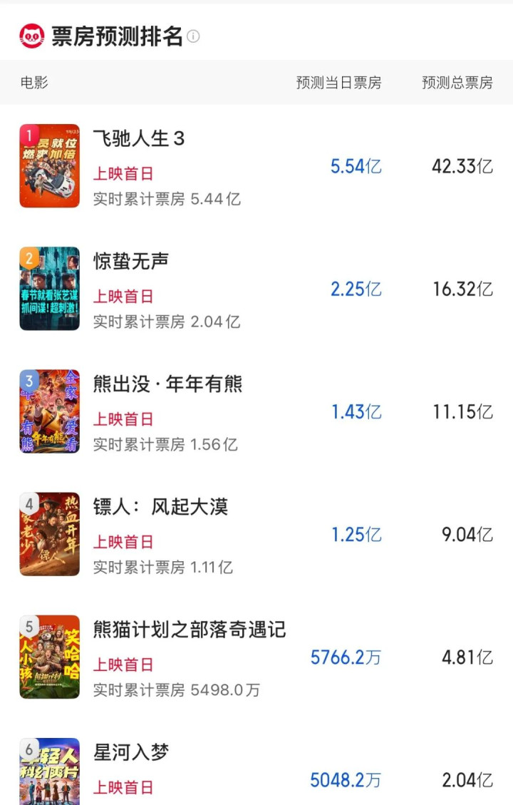 本年应该会是最莫得悬念的一届春节档,从当今的票房瞻望看,《奔驰东谈主生3》一骑绝尘,在抖音也齐是热度第一,能够率即是冠军了。