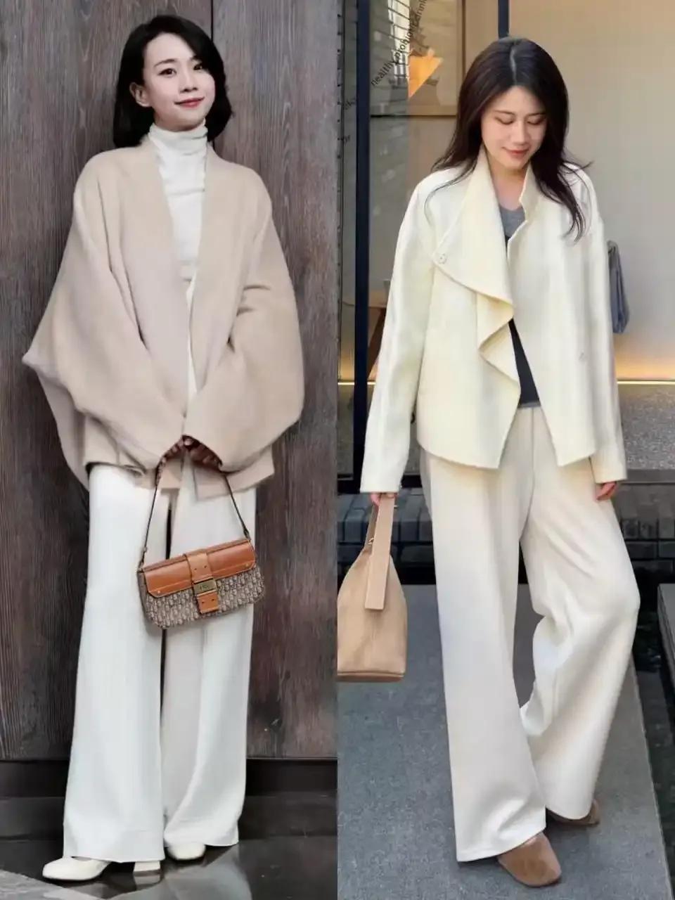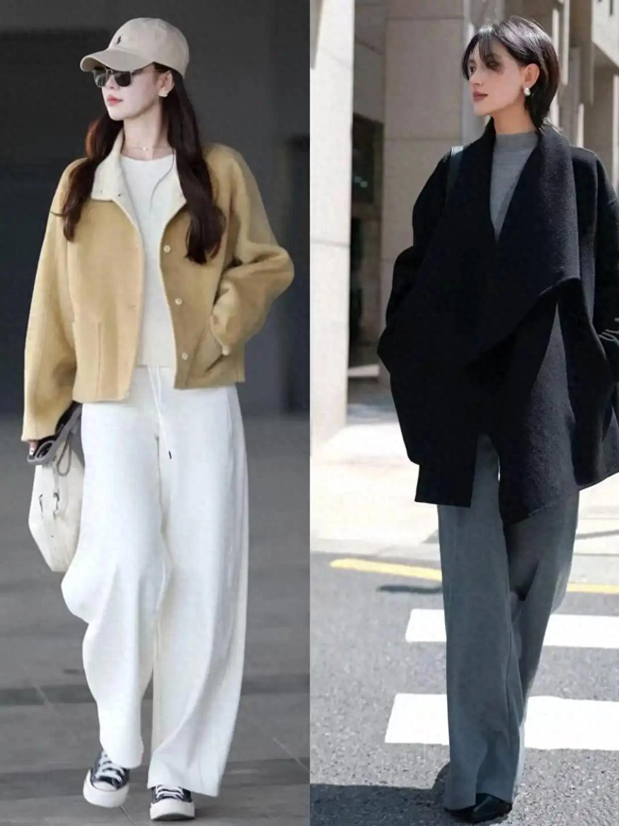 第一章节,短大衣搭配阔腿裤的上风分析Tips①:短大衣不压个子