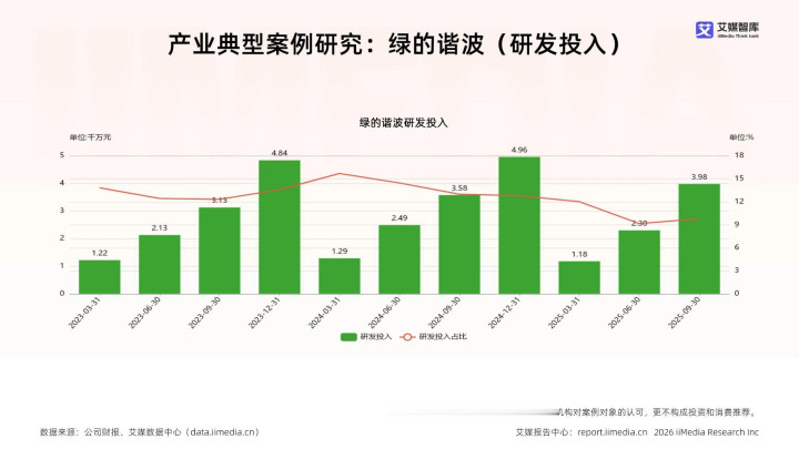 基于绿的谐波2023-2025年季度累计研发进入数据,其年度累计研发进入限度平稳在4千万-5千万元区间,2025年前三季度累计约4千万元,瞻望全年限度将保捏平稳或略有增长。从进入强度看,研发用度占营收比例(研发强度)虽从2023、2024年的13.00%操纵高位有所回落,但2025年前三季度仍保管在9.00%-12.00%区间,体现了公司对研发的坚毅进入。行为东说念主形机器东说念主中枢部件(谐波延缓器)的领军企业,保管逾越10.00%的研发强度是其保捏本领当先性和交代产业热烈竞争的关节。现时进入限度与强度匹配产业本性,但完全金额增长简单。提出公司在保管高强度研发进入的同期,效劳进步营收限度以相沿更大体量的研发花式,从而不才一代家具迭代和工艺松懈上建造更深的护城河。