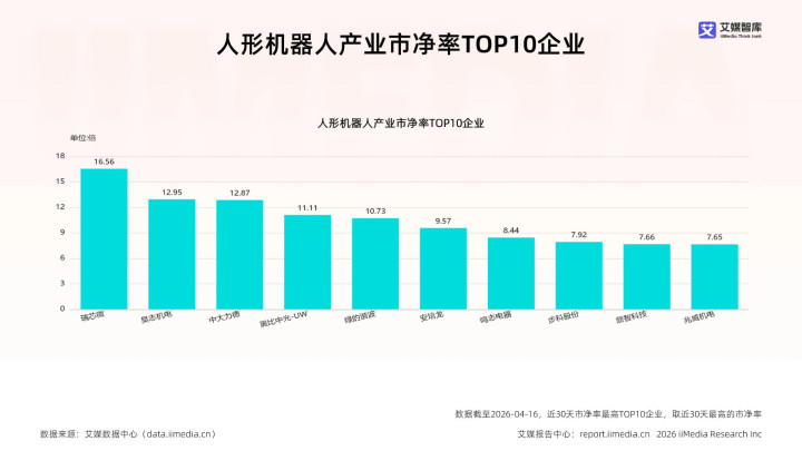监测数据娇傲,东说念主形机器东说念主产业市净率前三名企业分别为瑞芯微(16.56倍)、昊志机电(12.95倍)、中放肆德(12.87倍)。艾媒筹商分析师觉得,东说念主形机器东说念主产业市净率TOP10企业的市净率均远超5倍,属极高估值区间,其共同特征是均为东说念主形机器东说念主产业链中枢门径的本领密集型硬件供应商,触及芯片、传感器、延缓器、电机等关节部件。高估值响应了阛阓对其本领壁垒、钞票稀缺性及高成长后劲的强烈溢价,其净钞票收益率与成长性预期是相沿估值的关节逻辑,品牌与本领护城河组成了无形钞票的中枢价值。