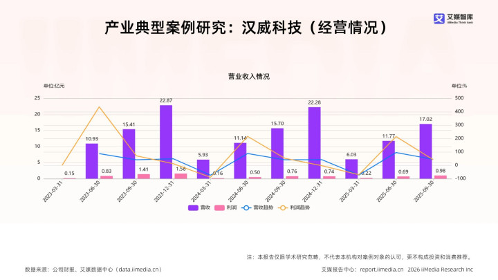 基于最新数据(2025年第三季度累计),汉威科技营收17.02亿元,利润0.98亿元,净利润率仅为5.76%,盈利水平较低。公司营收限度捏续彭胀,最新累计值已超上年同期。趋势呈现权贵季节性:Q1因上年Q4高基数及业务节律导致同比大幅负增长,Q2-Q3则还原强盛同比正增长(44.00%-95.00%),响应业务放量主要连合不才半年。计较单季收入,2025年Q3单季营收约为5.25亿元(17.02亿-11.77亿),环比Q2单季(约5.74亿元)略有下滑,增长动能似有放缓迹象。现时极低的净利润率标明公司可能处于阛阓拓延期,以价换量,或家具成本收尾承压。东说念主形机器东说念主产业尚处于早期买卖化阶段,企业前期研发、阛阓进入巨大,营收高增长而利润简单允洽产业本性。