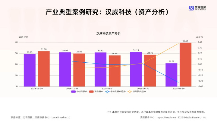 汉威科技总钞票限度平稳在60亿元操纵,全体趋势自如,但钞票结构呈现阶段性变化特征:2024年Q3到2025年Q2,流动钞票与非流动钞票占比接近1:1,娇傲公司具备一定的固定钞票和恒久投资基础,适配机器东说念主产业本领密集型本性。2025年Q3,公司钞票结构发生剧烈回转:流动钞票大幅彭胀至39.66亿元,占比跃升至65.36%;非流动钞票骤降至21.02亿元,占比回落至34.64%。从增长脱手看,2024年Q3到2025年Q2的钞票增长主要由非流动钞票彭胀相沿;2025Q3则转为流动钞票的大幅彭胀,脱手身分发生较着变化。全体而言,现时钞票限度与盘算限度匹配度较高,相沿庄重运营,但需柔软2025年Q3钞票结构变化的捏续性,以及对公司恒久研发与产能进入节律的影响。