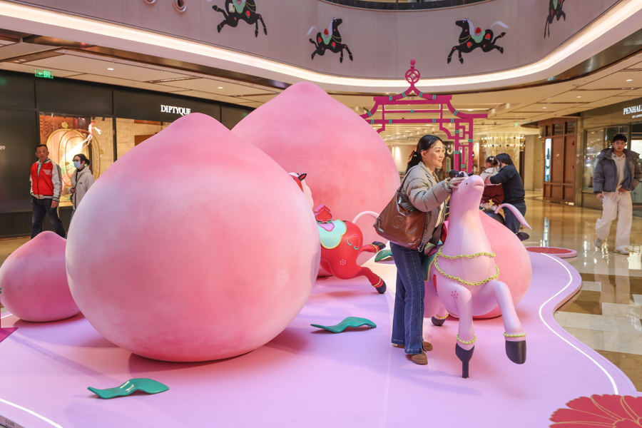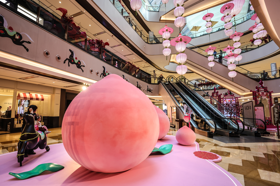 本次活动季,兴业太古汇联袂林子楠职责室,齐集东方好意思学与海外视线,以现代艺术立异演绎中国传统文化。艺术家林子楠永久关爱当然、东方文化、现代意志等主题,这次以生肖“马”以及“桃”等花果纹样为核情意想创作,使年节象征跃然于皆市空间之中,精辟新的人命力与感染力。