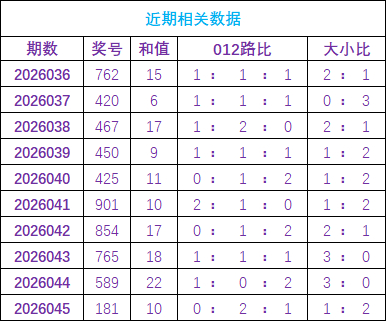 大小比分析:上期开出奖181,大小比是1:2,小码球出现次数较多,近十期大小比是16:14,举座看大码球发达活跃,本期预测小码球强势开出,看好大小比是1:2