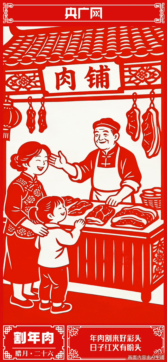 ag国际 年味里的中国丨腊月二十六,欢欢慷慨割年肉,红红火火有盼头