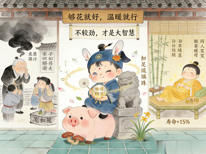 而那些“心宽体胖”的至友,年青时吃了亏也不记仇,老了反而没隐衷。这种“傻”,其实是最高等的养生。 钱多钱少,够花就好;屋子大小,蔼然就行。这种平静的能量,会蛊惑通常正能量的东谈主和事,晚年当然不缺钱、不缺爱。