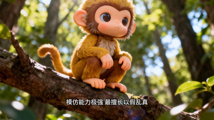 ·2、猴贤达机灵,效法技巧极强,最擅长以伪乱真。山公能效法东谈主的行为方法,以致效法其他动物的步履,学得惟妙惟肖,让东谈主真假难分。它心想机巧,善于伪装和庇荫,无意特意作念出假象,让东谈主摸不透确凿意图,如同真假楮叶交错难以分袂,恰是莫辨楮叶的生动写真。