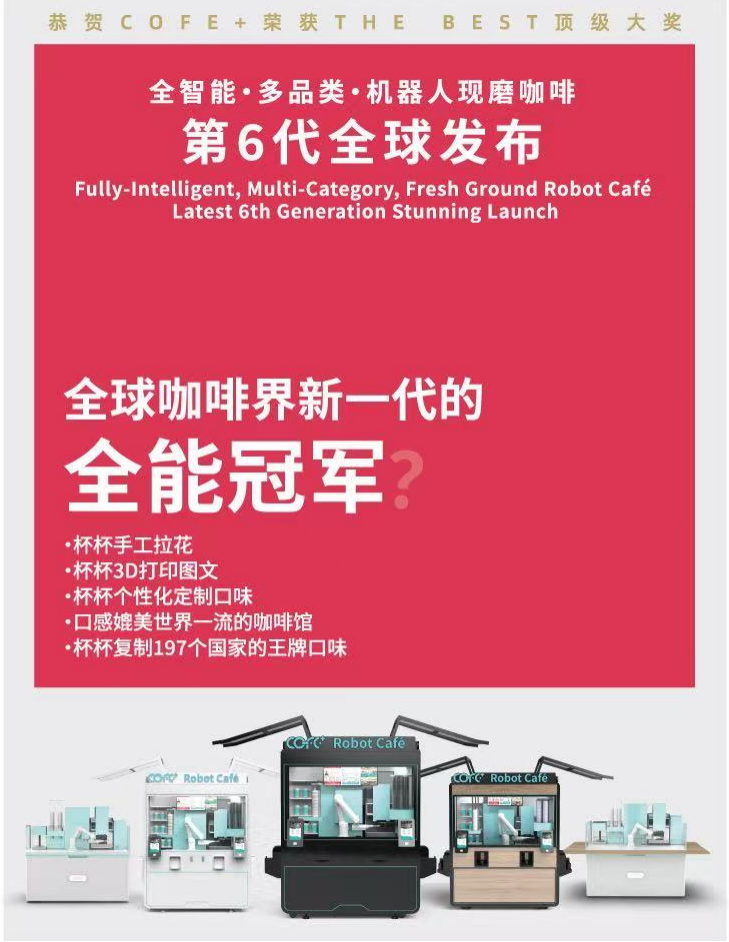 COFE+第六代产物集AI、物联网、精密机械于一体,被誉为咖啡机器东谈主规模的“六边形战士”: